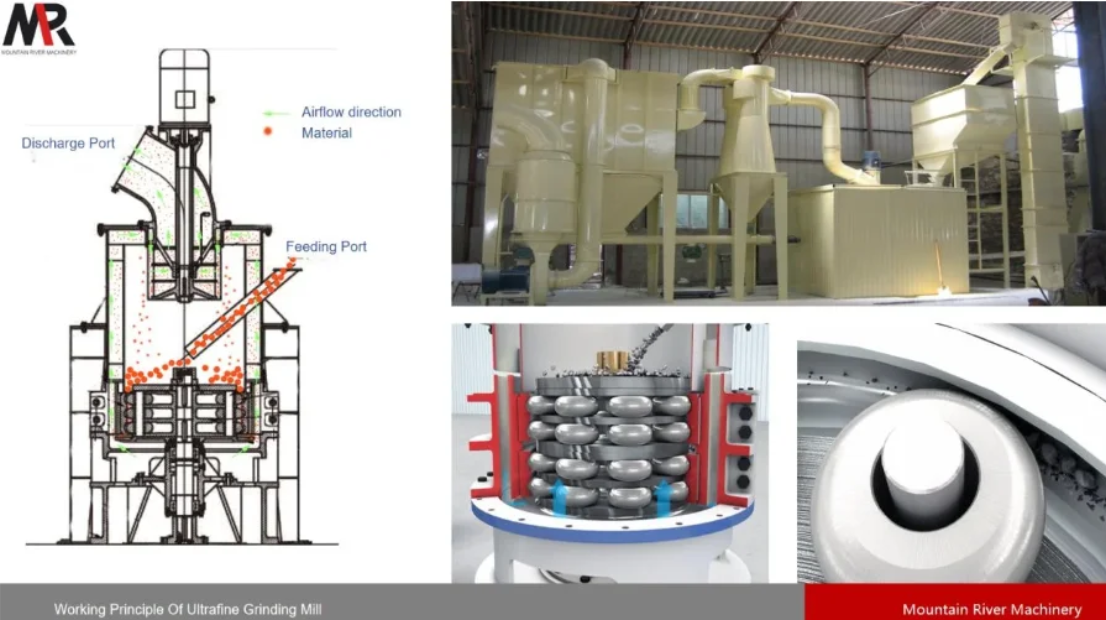O moinho ultrafino é especializado em pó ultrafino, podendo moer a calcita até atingir uma finura de 325 a 2500 mesh. É adequado para linhas de produção de pequeno e médio porte que buscam alto valor agregado, permitindo preservar melhor a alvura e a pureza da calcita. No mercado latino-americano, este pó de calcita ultrafino é utilizado principalmente em indústrias com elevados requisitos de qualidade de pó, tais como masterbatches para plásticos de alta qualidade, selantes, tintas ecológicas de base aquosa de alto desempenho e revestimentos para papel.