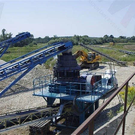 A estrutura principal do britador cônico Symons inclui as seguintes partes: primeiro, a câmara de britagem, composta por um cone móvel e um cone fixo, responsável pela britagem do material; segundo, o eixo principal e a luva excêntrica, que giram para acionar o cone móvel, permitindo a britagem contínua; por fim, há uma mola ou sistema hidráulico, que é usado para ajustar o tamanho da porta de descarga e a proteção contra sobrecarga; além disso, há um sistema de lubrificação para garantir que todas as peças funcionem perfeitamente durante a operação do equipamento. A estrutura geral é simples e confiável, fácil de operar e adequada para o processamento de minérios e rochas com dureza média ou superior.